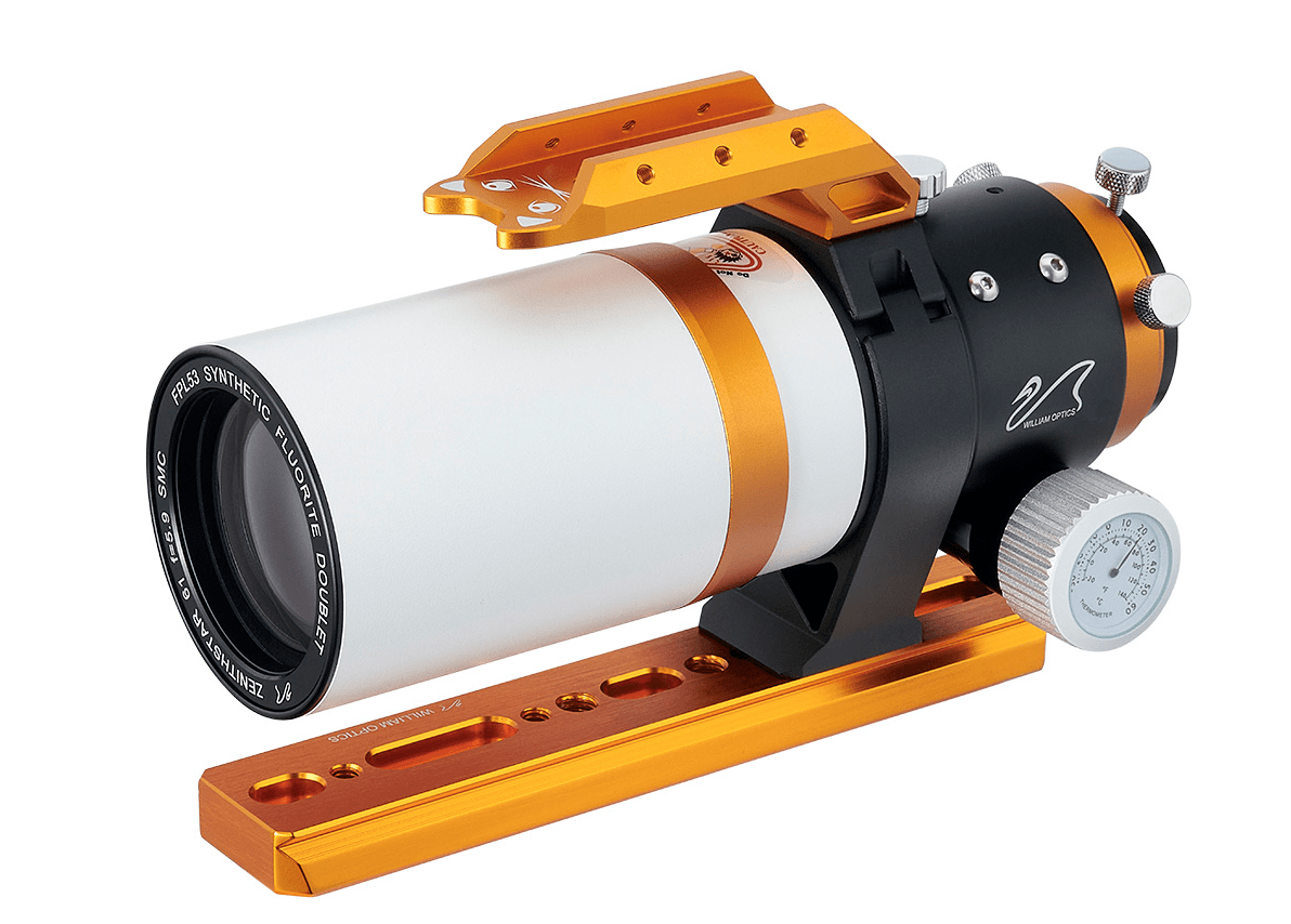 We zouden de William Optics ZenithStar 61 II APO Doublet refractor kunnen samenvatten als klein en serieus of serieus klein. Het is een klein, zeer draagbaar instrument met een 61 mm opening, f/5.9, twee elementen FPL-53 kleur gecorrigeerde ED doubletlens, die indruk maakt, vooral bij gebruik voor astrofotografie. Daarnaast beschikt deze WO ZS61 II ook over een 2″ R&P focuseerinrichting, cat handle bar, en een ingebouwd Bahtinov masker. De ZenithStar 61 is de ideale reisgenoot en wordt geleverd inclusief tas.