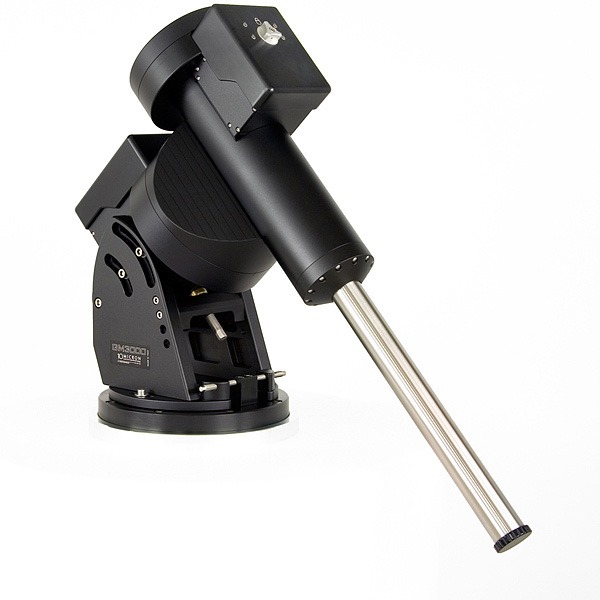 The GM3000 HPS mount is built for observatories with an instrumentation up to a weight of 100 kg – 220 lbs (excluding counterweights). It is ideal for remotized observation sites, and its loading capacity allows for mounting instruments like 200 mm diameter refractors, 300 mm diameter Newton reflectors, 450 mm diameter Cassegrains and so on. Movements are driven by two servo brushless motors, with timing belt reduction having zerobacklash. Both axes feature a classic worm – wormwheel pairing. The wormwheels are made of bronze (B14), with a diameter of 244 mm and 315 teeth in right ascension, and a diameter of 192 mm and 250 teeth in declination. The worms are made of alloy tempered steel with a diameter of 32 mm and 24 mm respectively. The axes themselves are made of alloy steel, with a diameter of 80 mm (right ascension) and 60 mm (declination), for the maximum rigidity.