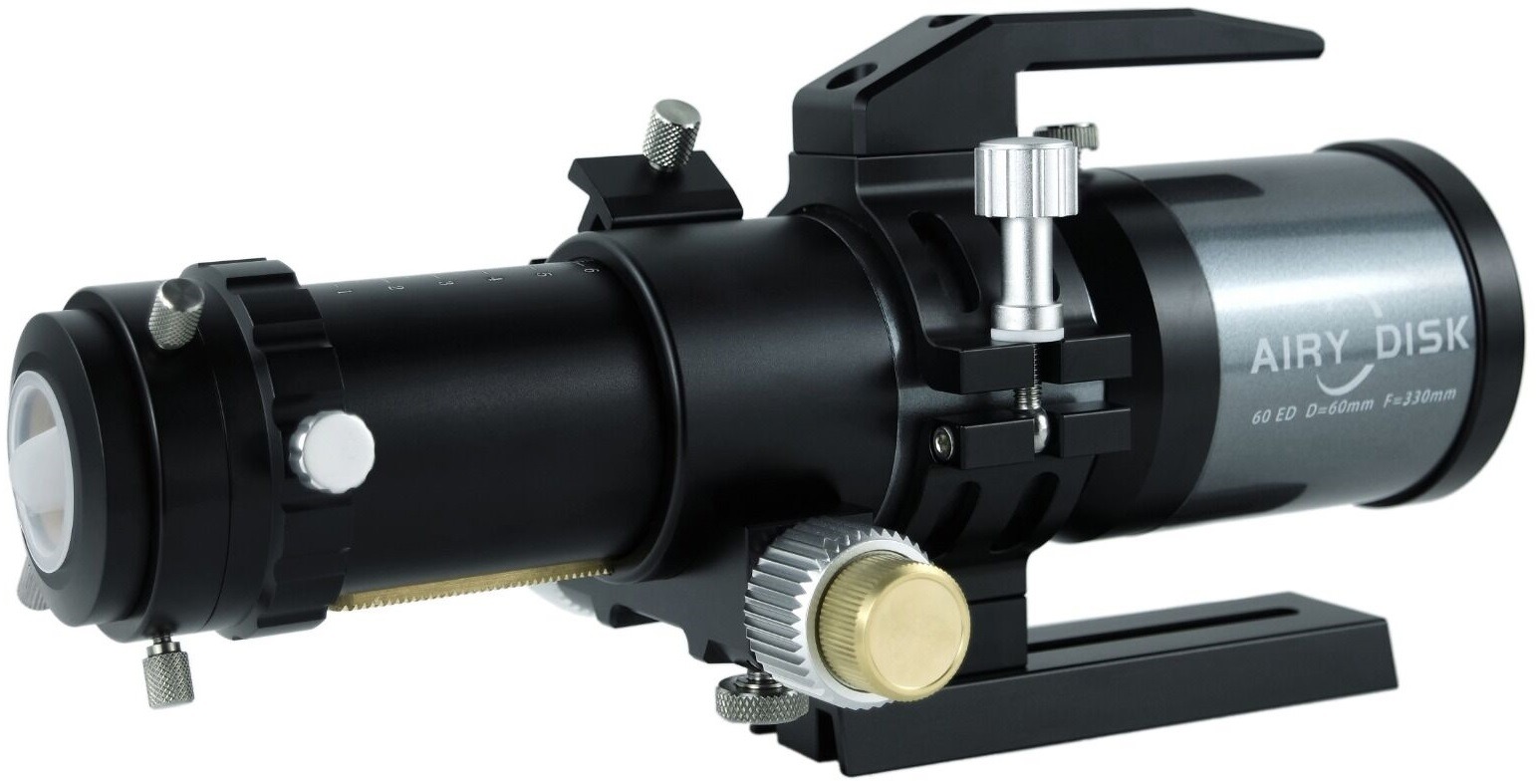 Airy Disk 60ED grijs refractor f/5.5 Doublet is een kleine compacte telescoop met hoge prestaties. Airy Disk is een nieuw merk maar eigenlijk al jarenlang bezig met het maken van telescopen. Menigeen heeft er misschien al eens 1 in huis hebben gehad. Ze hebben onder andere telescopen gemaakt voor SharpStar, Telescoop Service en Omegon.