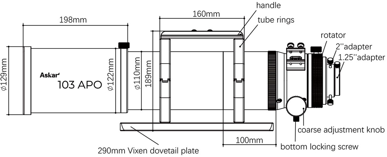 De Askar 103APO maakt gebruik van een drievoudig APO-lensontwerp met luchtafstand, inclusief één stuk ED-glas.