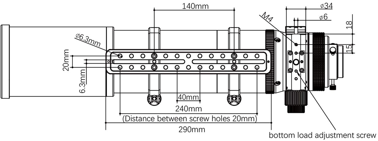 De achterkant van de focuser is voorzien van een 360° uiterst nauwkeurige grote rotator, samen met nauwkeurige schalen voor gemakkelijke aanpassing en besparing van rotatiehoeken, waardoor nauwkeurige rotatie mogelijk is. Hij is ook uitgerust met een vergrote rotatorborgschroef die zelfs onder hoge belasting gemakkelijk kan worden vastgezet.
