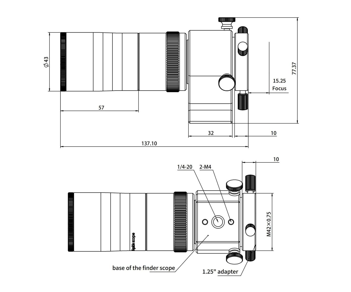 De 32 mm F4 Guide Scope wordt geleverd met een 1.25-inch adapter en een M42-adapter met schroefdraad, waarmee in principe wordt voldaan aan de eisen van gebruikers bij het aansluiten van hun fotografie trein.
