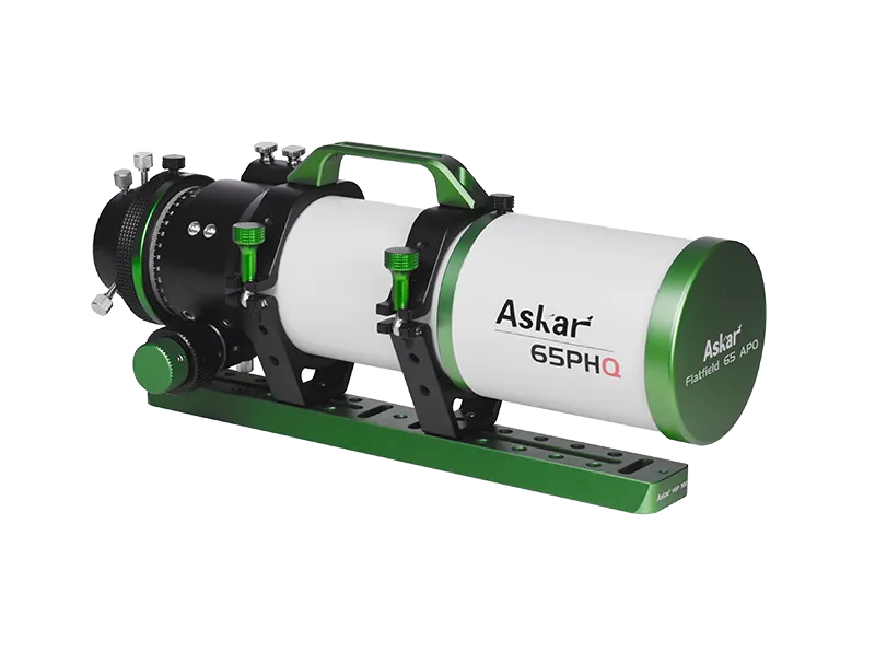 De Askar 65PHQ Quintuplet Telescoop is een flatfield-astrograaf die is gelanceerd na de 80PHQ, 107PHQ en 130PHQ. In plaats van extra flatteners te kopen, de backfocus van de flattener te berekenen. Of een moeizame verbinding te maken om de juiste afstand te bepalen, kunnen astrofotografen hem eenvoudig uitrusten met alle mogelijke beeldaccessoires. Het doel scherpstellen en het hele optische systeem is dan perfect voor het maken van foto’s.