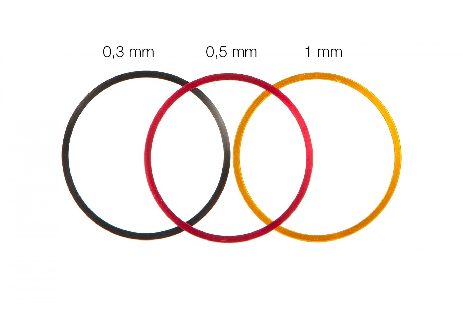 - Set bestaande uit Astro T-2 System spacer (Fine-Adjustment) ringen in diktes 0,3 mm (zwart), 0,5 mm (rood), 1 mm (goud)