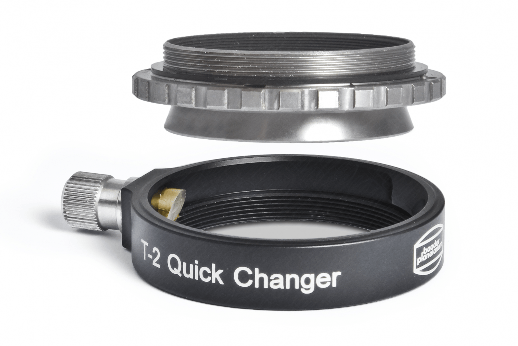 - T-Quick Changer (met Zeiss-drukblok) is letterlijk gelijk aan het Zeiss-origineel – alleen bevat het een eigentijdse T-2-binnendraad (M42 x 0.75)