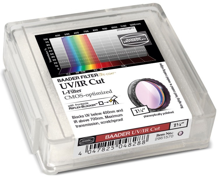 Nieuwste model van Baader, dit UV/IR filter is CMOS-optimized. Blokkeert UV onder 400nm en IR boven 700nm.