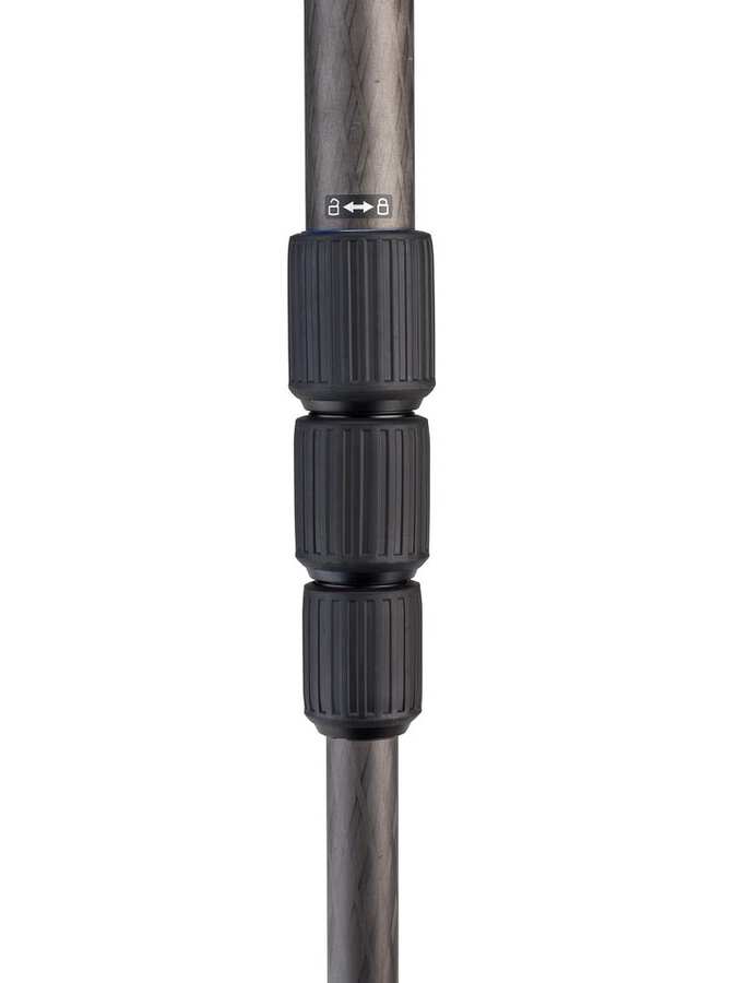 Deze Mach 3 is uitgevoerd in Carbon. De spider is van het lichte en sterke magnesium. Door het gebruik van deze materialen, in combinatie met het beproefde ontwerp, is de Mach 3 stevig maar toch niet zwaar en geschikt voor de meest uiteenlopende fotografiestijlen. De herkenbare blauwe draaisluiting voor het vastzetten van de midden kolom is uitgevoerd in licht aluminium. Waardoor de midden kolom in iedere positie stevig vergrendeld wordt.