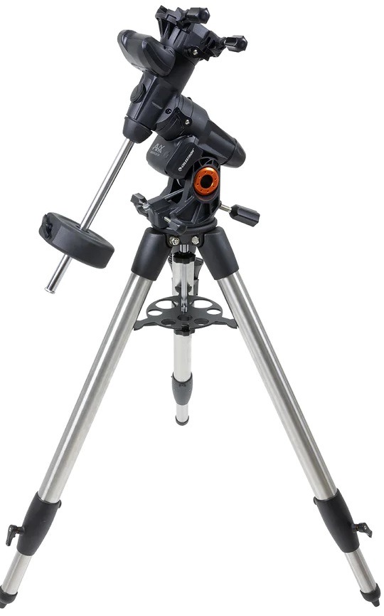 Het nieuwe design van de Celestron Advanced VX zorgt voor meer stijfheid in heel de montering wat de algehele prestaties ten goede komt. De knoppen om de montering op de juiste breedtegraad te zetten, zijn goed te bereiken en makkelijk te verstellen. De breedtegraad is nu te verstellen tussen de 7 en 77 graden. Door het nieuwe design is het mogelijk om door de meridiaan lijn te gaan zonder de behuizing van de motoren in de weg zitten. Het statief is van 51 mm dik roestvrij staal waarvan de poten in hoogte zijn te verstellen. De handcontroller NexStar+ USB is voorzien van meer dan 40.000 objecten.