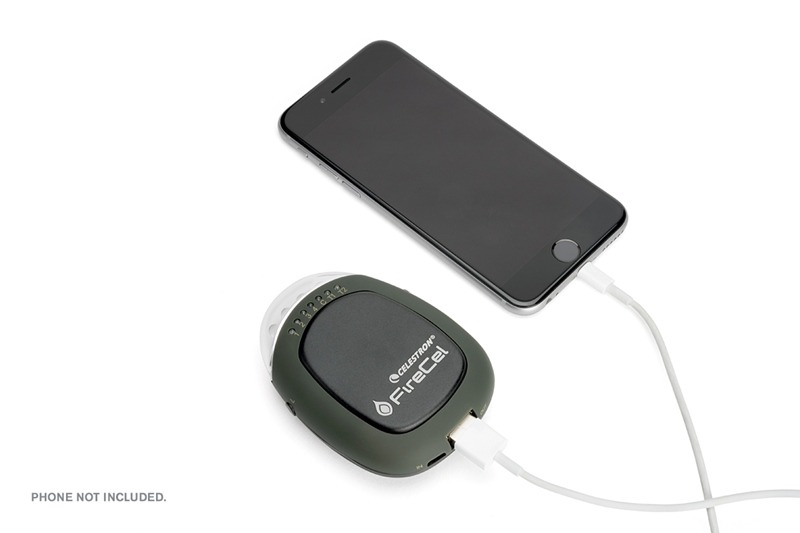 De Celestron Elements Firecel is een klein en compact 3 in 1 apparaat. Het is een handwarmer, zaklamp en oplaadstation voor een telefoon, MP3 speler of ander usb apparaten. Je kunt je handen warmen tot ongeveer 3 uur lang. Diverse mogelijkheden voor de verlichting, van knipperen tot SOS signaal.