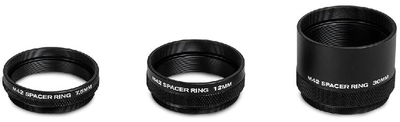 Celestron’s M42 Spacer Ring kit bevat drie verschillende lengtes spacer ringen om de juiste back-focus afstand te bereiken met onze populaire Celestron optische buizen en T-schroefdraad camera adapters.
