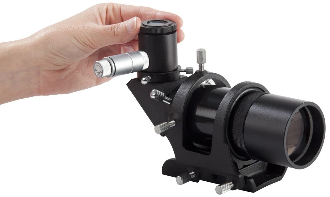 Zoeker, 9×50 met recht opstaand beeld. Inclusief verlichting en dubbel kruisdraad. Inclusief robuuste houder die op elke Schmidt-Cassegrain of Edge HD telescoop past. Het diagonaal is draaibaar of zelfs eruit te halen. De zoeker kan nauwkeurig uitgericht worden.