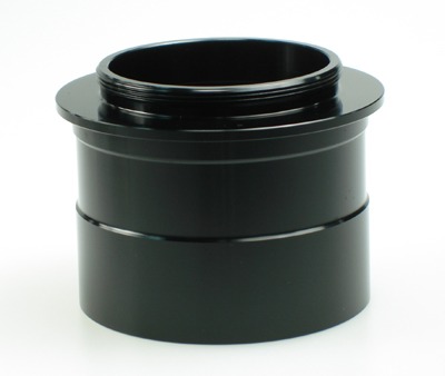 De inkeping zorgt ervoor dat de adapter er niet zomaar uit kan schuiven. Zorg er wel voor dat je de adapter altijd goed vast klemt zodat je dure camera er niet uit kan vallen. Deze adapter kan je direct in je 2 inch focusseerinrichting schuiven of te gebruiken in combinatie met een 2 inch barlow lens.