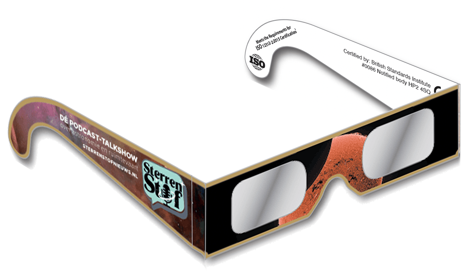 - Absolute veiligheid: onze eclipsbril schermt 100 % ultraviolette (UV) en infrarode (IR) straling af.