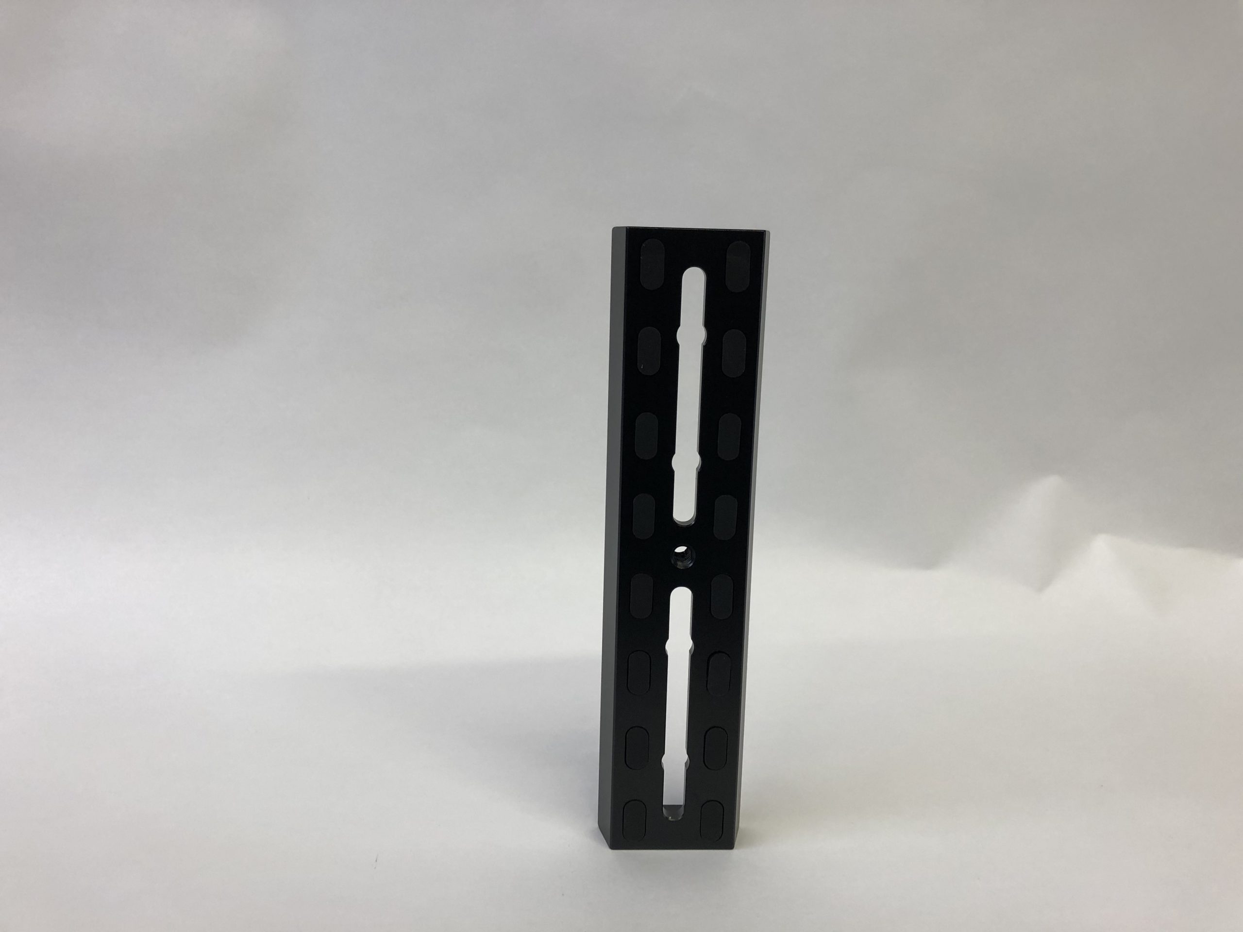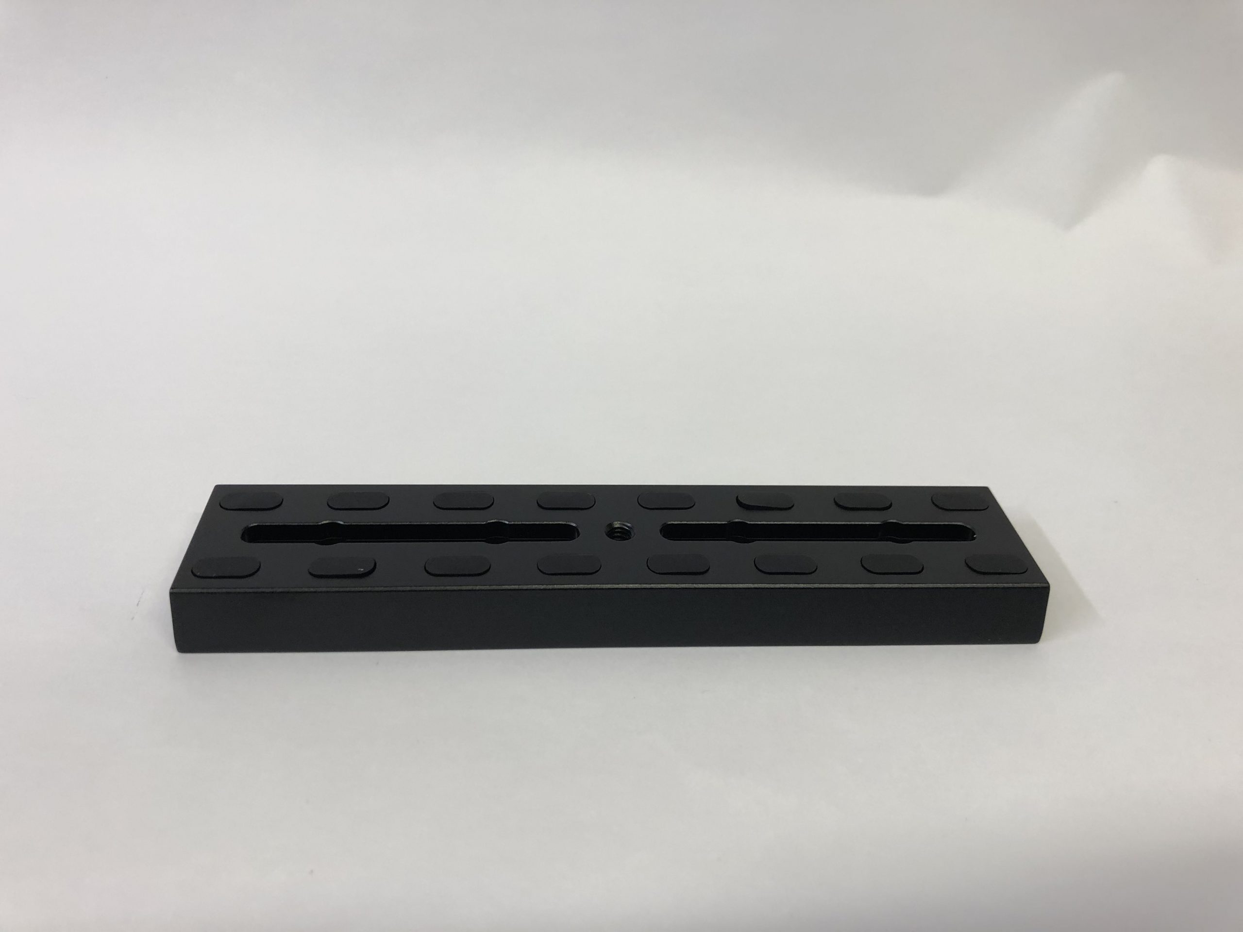 Ganymedes Vixen stijl zwaluwstaart met rubberen inlegplaatjes. Handig als je een accessoire hebt welke maar met 1 schroef vast kan zetten, dan kan deze niet zo makkelijk verdraaien. De zwaluwstaart heeft 2 brede sleuven en een gat met schroefdraad (1/4 inch / cameradraad).