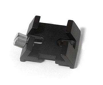 Zoeker voetje van GSO met enkele klemming van de zoeker houder. De meeste zoeker houders van Vixen, Celestron, SkyWatcher en Orion passen hier moeiteloos in.