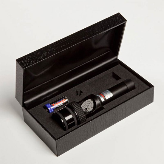De draadkruislaser kan de gebruiker gemakkelijk helpen om de secundaire spiegel aan te passen om de laser precies op het midden te richten met behulp van de draadkruislijn. De Hotech SCA Laser Collimator bevat één CR123-batterij.
