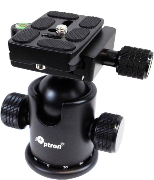 De iOptron high-performance kogel kop is ontworpen voor een soepele precisiebeweging, hieruit volgt het onafhankelijk bedienen van pan en tilt bewegingen.