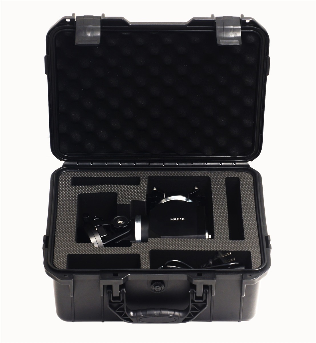 Door gebruik te maken van geavanceerde strain wave gear-technologie voor zowel RA- als DEC-bewegingen, levert de HAE18 een ongeëvenaarde verhouding tussen gewicht en draagvermogen. De zwart geanodiseerde CNC-gefreesde metalen behuizing is niet alleen een lust voor het oog, maar vormt ook een robuust platform dat jarenlang topprestaties levert. Unieke kenmerken zijn onder andere een elektronische wrijvingsrem waarmee de montering veilig tot stilstand kan komen.