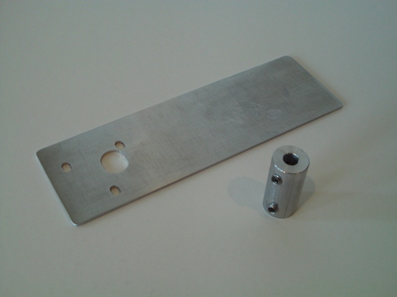 Met deze universele plaat kan je de focus motor op de focuseer inrichting plaatsen. Heeft nog wel enige bewerking nodig. Inclusief een cylinder om de as van de focusr op de motor te bevestigen.