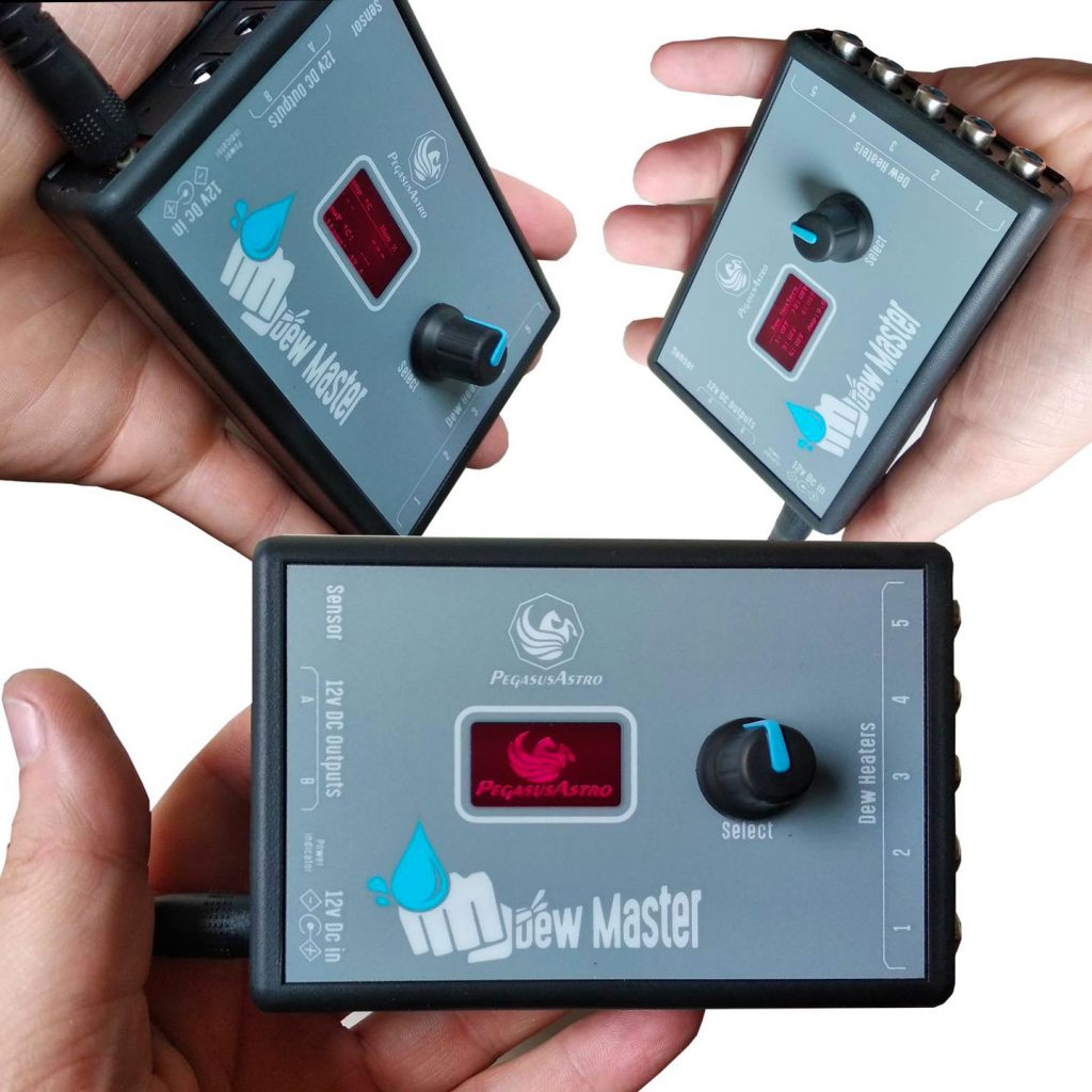 DewMaster was made for the visual astronomer. Connect up to five dew heaters and control them individually using PWM duty cycle. Full digital operation and a high resolution red film display makes the control of the device quick and simple. Measure consumed Amperes and Input voltage by a glimpse of an eye. Optionally, an external temperature and humidity sensor will let you know the levels of the relative humidity , temperature and dew point. Automatic dew heaters control will let you relax as you know that in case of high levels of humidity your optics will be moisture free!