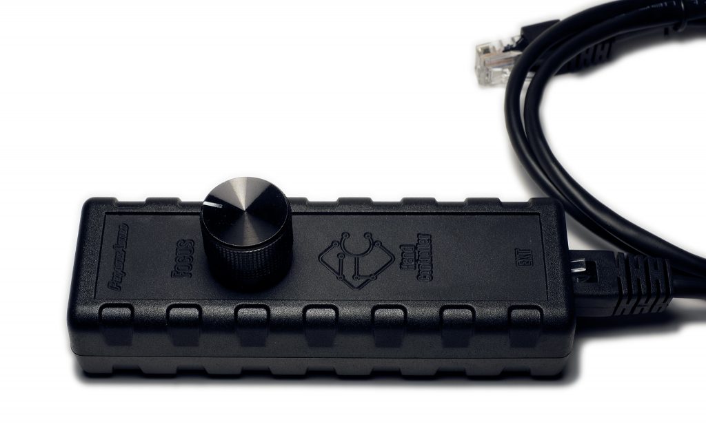 Just plug the hand controller in the auxiliary port of the FocusCube and enjoy precision in manual focusing without vibrations. No need to remove the hand controller when you use your PC to control the FocusCube. Both can work in parallel.