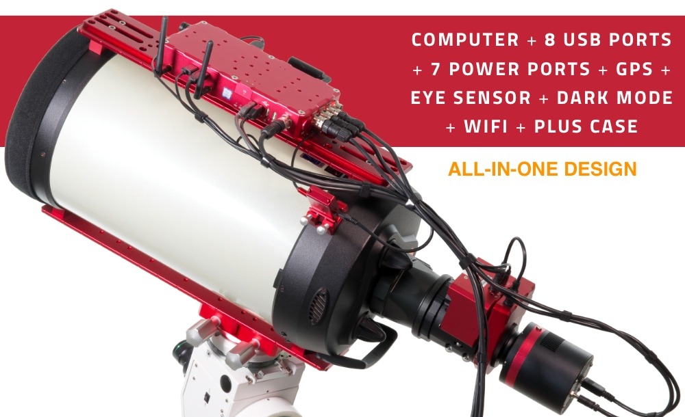 EAGLE4 S is de krachtigere versie van de EAGLE4. Met zijn Dual Core i3-processor (met Turbo Mode tot 3,9 GHz), 8 GB snel geheugen, grotere SSD (240 GB) en toegevoegde Thunderbolt 3-poort met USB-C-connector (die nog meer snelle connectiviteit mogelijk maakt, tot 40 Gbps, tot apparaten zoals snelle opslag als je extra ruimte nodig hebt), EAGLE4 S biedt nog meer kracht voor complexe toepassingen! Alles in een lichtgewicht, compact alles-in-één ontwerp dat op uw telescoop kan worden geïnstalleerd en dat wordt geleverd met alle geavanceerde functies van EAGLE4.