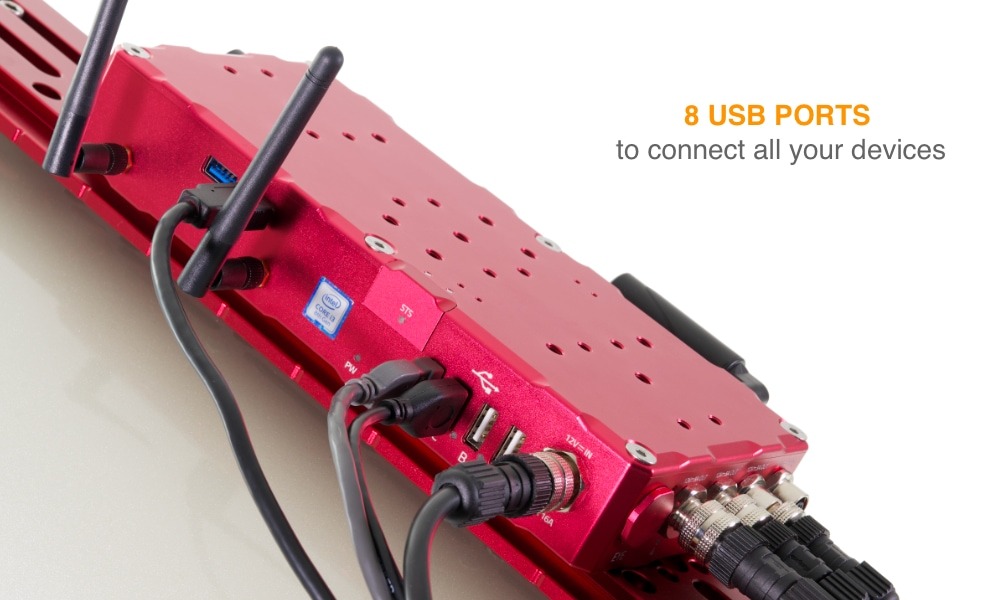 Intel’s 8e generatie i3-processor met een TDP van slechts 15 W en 4 MB cache biedt prestaties van desktopklasse bij een laag stroomverbruik. De EAGLE4 S van PrimaLuceLab biedt drie USB 3.1 type A-poorten met gegevensoverdrachtssnelheden tot 10 Gbps; één USB type C / Thunderbolt 3-poort met gegevensoverdrachtssnelheden tot 40 Gbps, evenals vijf USB 2.0-poorten, twee HDMI 2.0a-poorten, een Gigabit LAN-poort en Wireless 802.11ac.