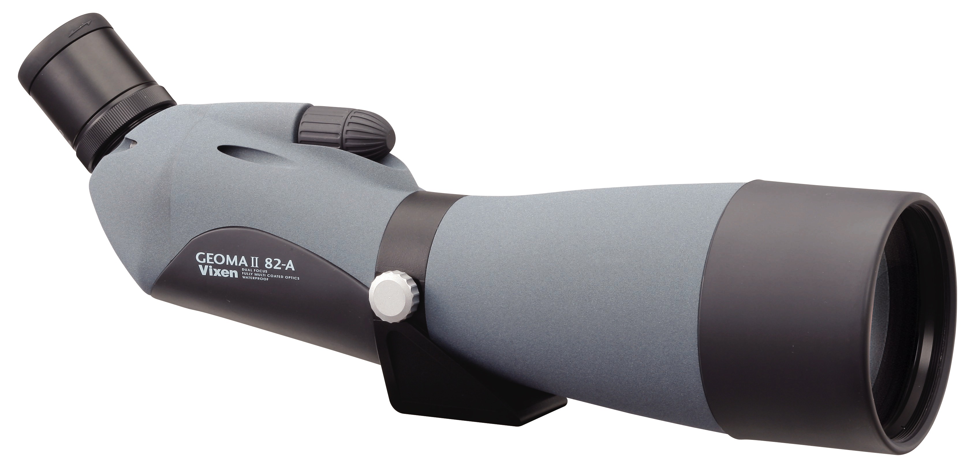 De Vixen Geoma II 82-A komt met een fraai zoom oculair welke een bereik heeft van 20-60x (GLH48T), een oogschelp die uitdraaibaar is zodat de juiste stand voor de oogafstand gezocht kan worden. Het focuseer systeem is uitgevoerd met een dual speed focuser, hiermee kunt u het object makkelijk, snel en heel precies scherpstellen. Dit is tevens fijn als de spottingscope ook voor fotografie gebruikt gaat worden. De spottingscope body is te roteren door middel van een ring welke door een knop lost of vast gezet word. Tevens bestaat de mogelijkheid om er andere oculairen op te zetten.