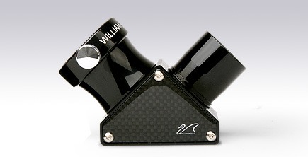 Het William Optics diagonaal heeft carbon fiber afdekplaatjes aan de zijkant. Dit is gedaan om het diagonaal zo licht als mogelijk te maken. En uiteindelijk is het ook een fraaier gezicht. Je kan deze plaatjes verwijderen met drie schroefjes aan elke kant. Waardoor je de spiegel eruit kan halen voor een schoonmaak beurt.