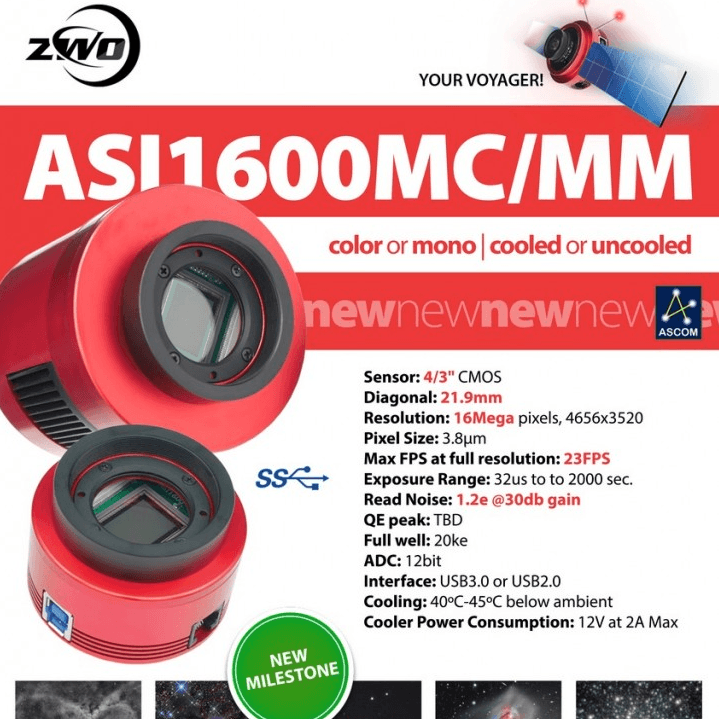 ZWO ASI 1600MM-PRO gekoeld (mono) 4656×3520