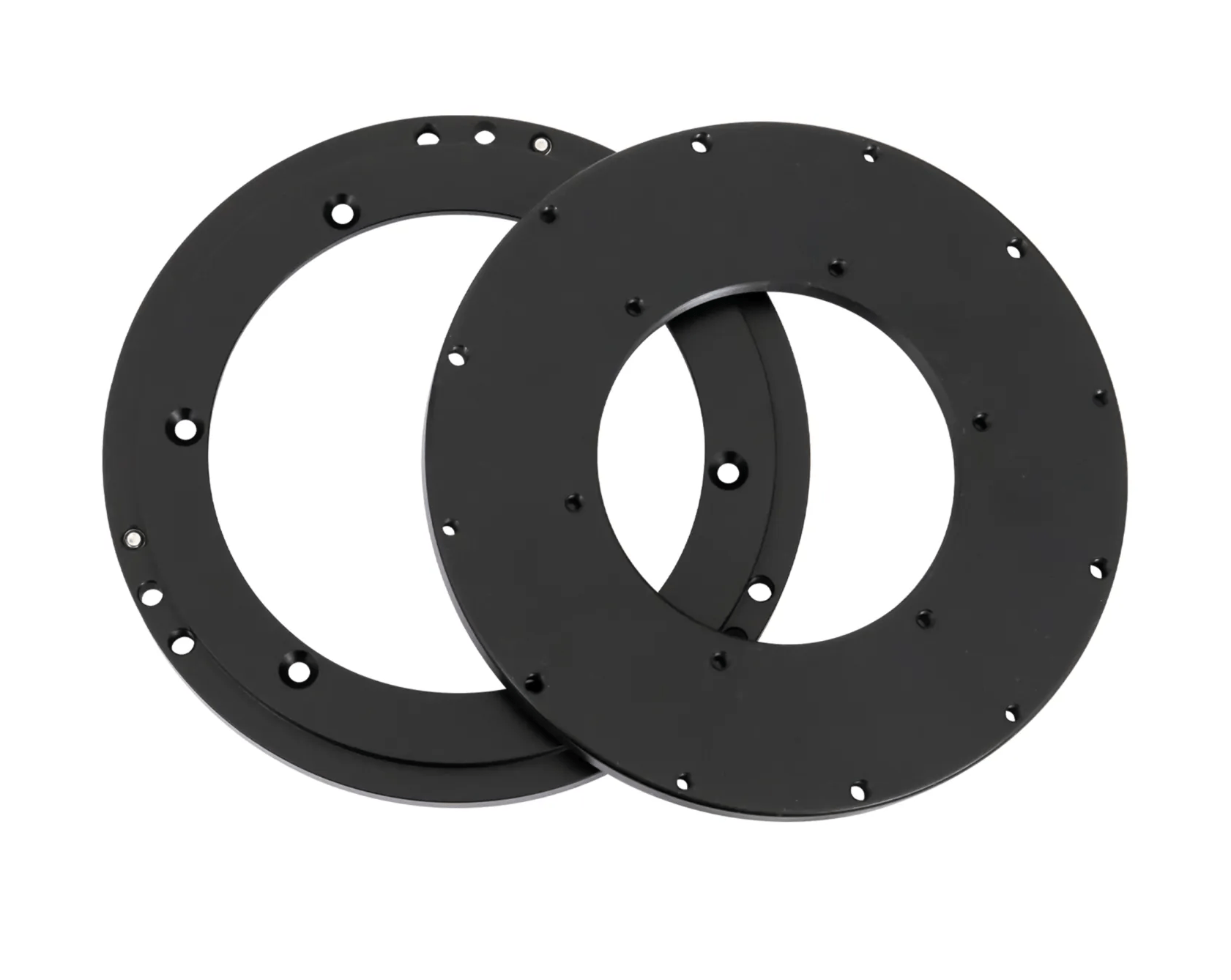 - Plaats vervolgens de tiltplaat van de M54-tilter op de camera. Draai ze om en bevestig de onder- en bovenplaat met drie M3-schroeven. Lijn de schroeven uit met de M3-schroefgaten (zoals weergegeven in de onderstaande mechanische tekening). De hoek tussen elke twee M3-schroeven moet 120° zijn.